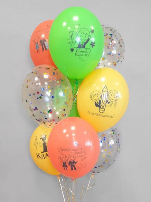 Шар латексный Кристалл прозрачный + конфетти матовое кружочки зеленый+красный+золото 3 штШар латексный с рисунком 1 сентября Первоклассники (1103-3079) 30 см 6 шт