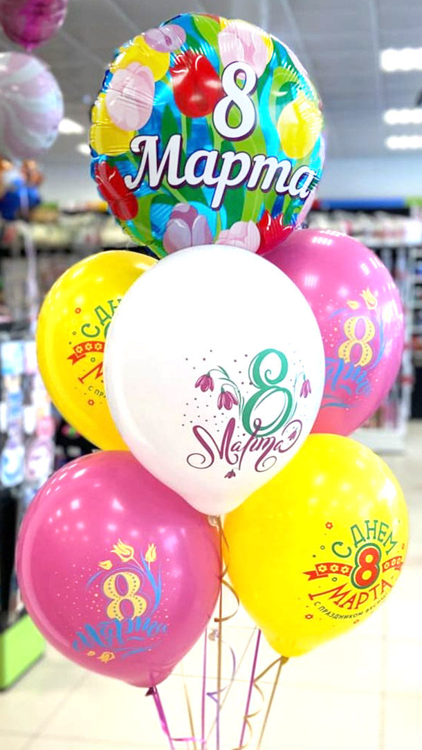 Шар Круг фольга 8 Марта (R737) 46 см 1 штШар латексный с рисунком 8 Марта С праздником Весны (711445) 30 см 6 шт