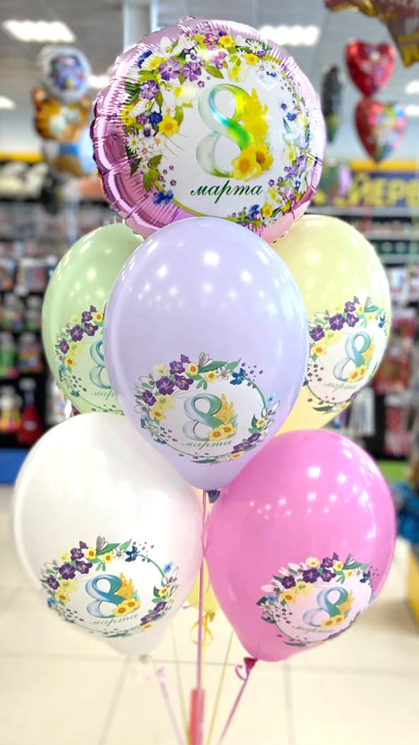 Шар Круг фольга 8 Марта цветы (1202-2754) 46 см 1 штШар латексный с рисунком 8 Марта Цветы (1103-1933) 30 см 6 шт