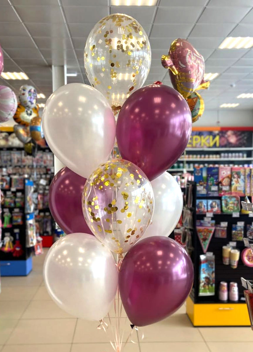 Букет Ассорти из шаров перламутр-бургундия 9 шт