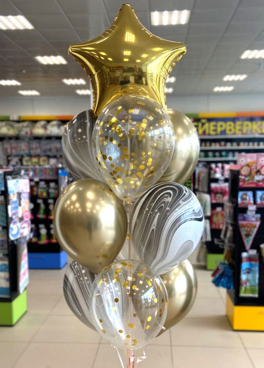 Букет Ассорти из шаров хром-агат Звезда золото №2 10 шт