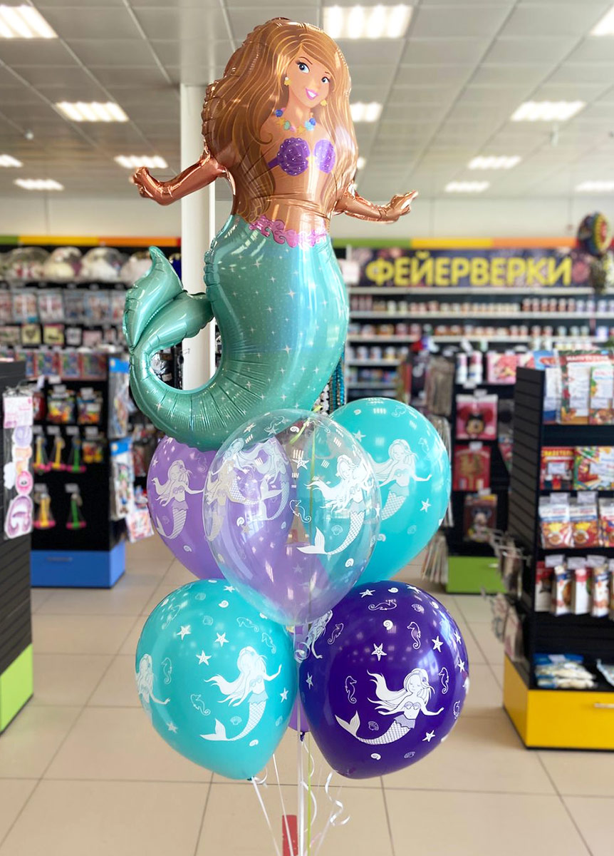 Шар фольга Фигура Русалочка милая 1 штШары латексные с рисунком Русалочка кристалл (150680) 6 шт