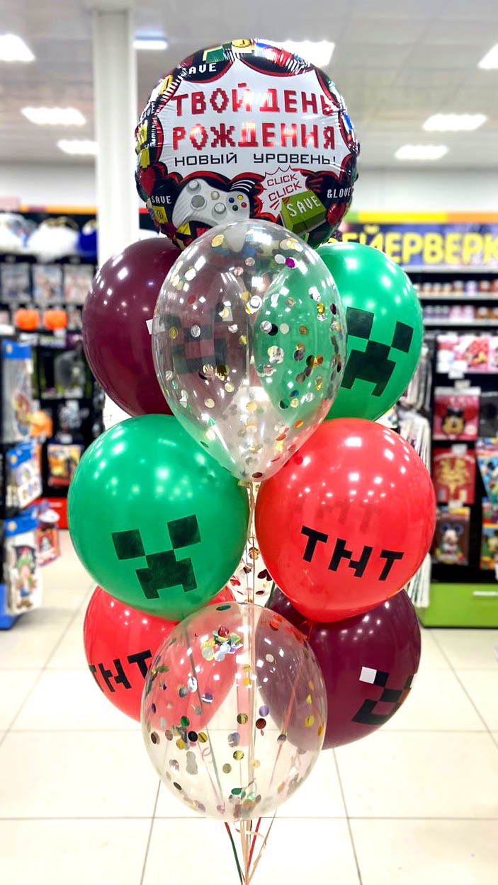 Шар Круг фольга Твой День рождения Пиксели 46 см 1 штШар латексный Кристалл прозрачный + конфетти разноцветное 3 шт