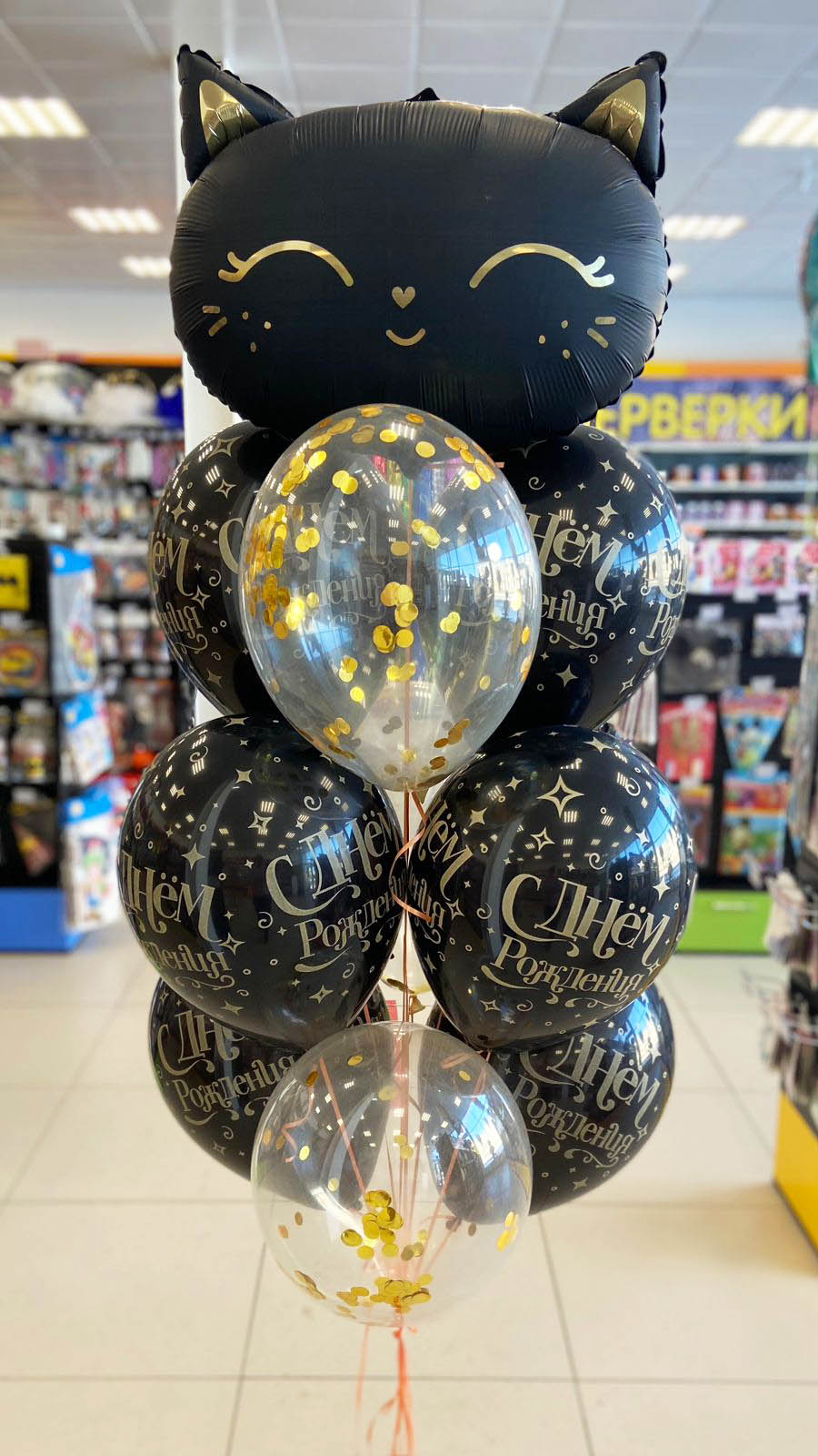Букет С Днем Рождения Кошка золото 10 шт