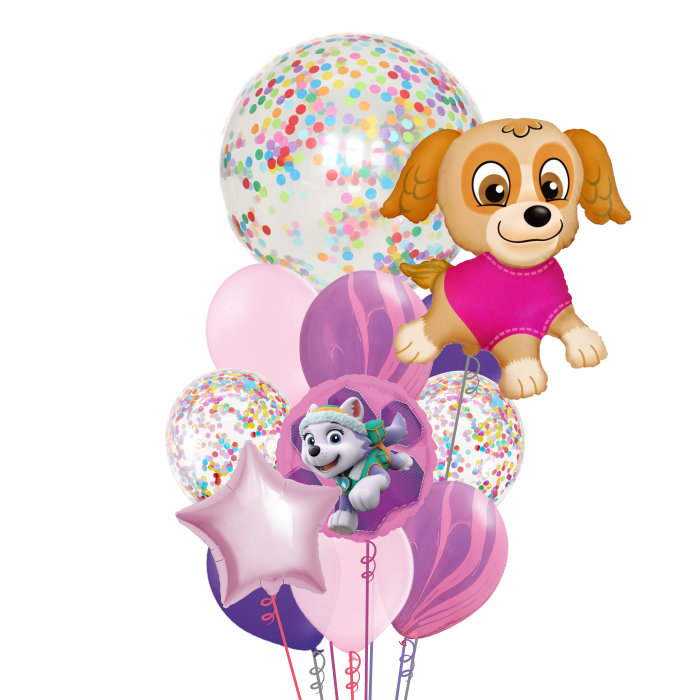 Букет Щенячий патруль для девочки+шары фольга/латекс/бабл/декор.наполнение12шт+гелий+обработка+груз