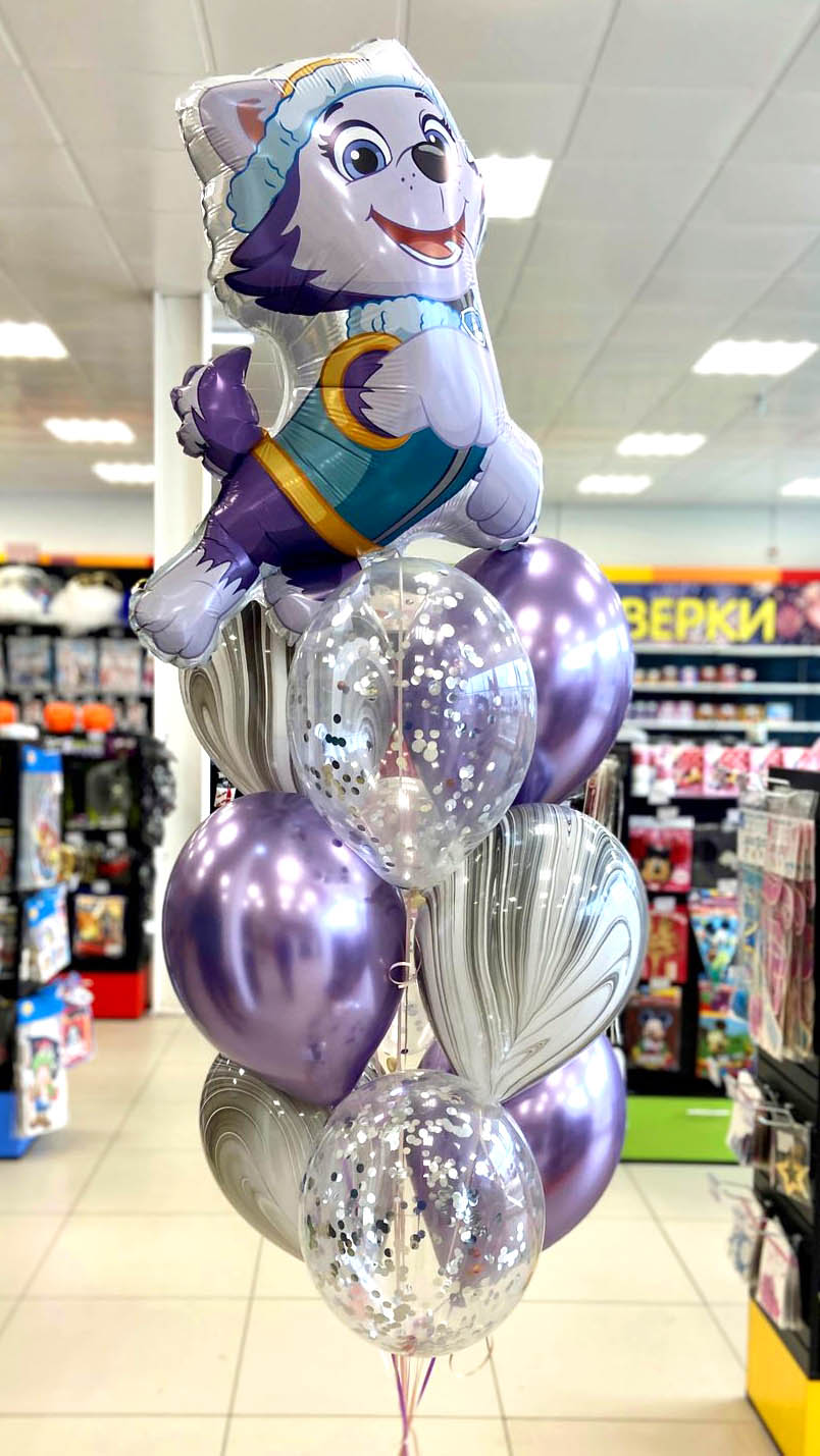Шар фольга Фигура Щенячий Патруль Эверест 1 штШар латексный Кристалл прозрачный с декоративным наполнением круги конфетти серебро 30 см 3 шт