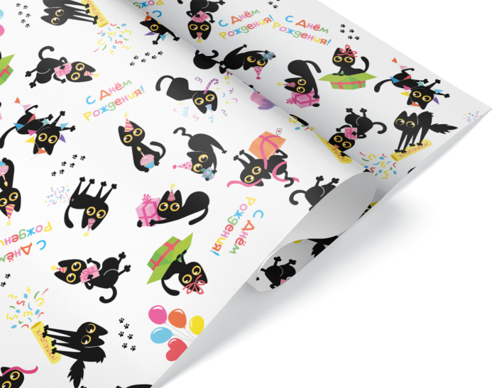 Бумага упаковочная С ДР Котики с подарками 70*100 см 1 шт