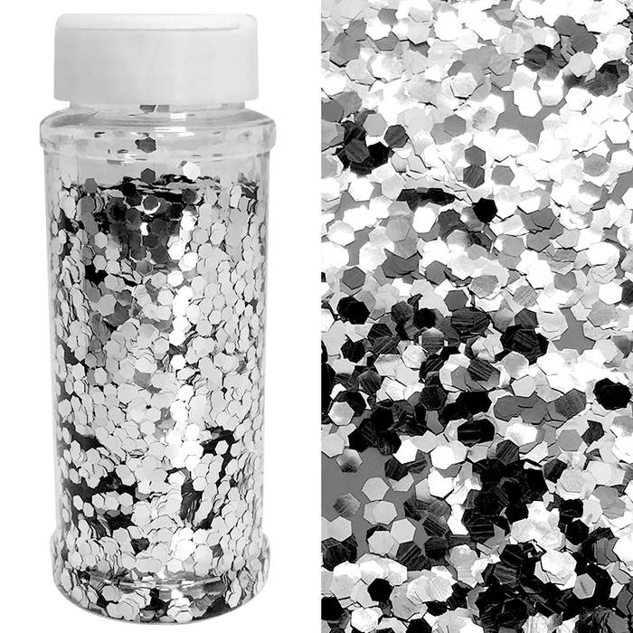 Конфетти Веселый праздник Шестиугольники серебро фольга 90 г банка