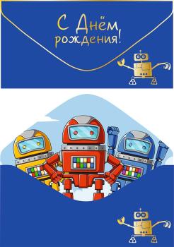 Конверт для денег С ДР Роботы 1 шт