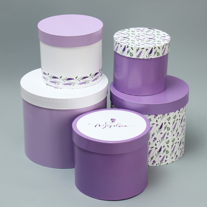 Коробка круг Лаванда №2 рис микс 1 шт
