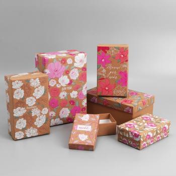 Коробка прямоуг Цветы крафт №5 рис микс 1 шт