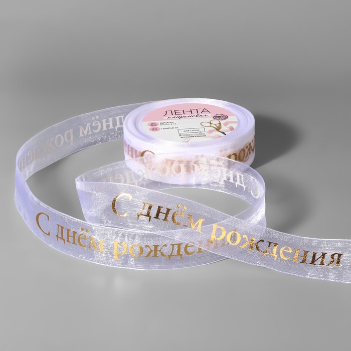 Лента капрон 25мм*23м С ДР белый/золото 1 шт