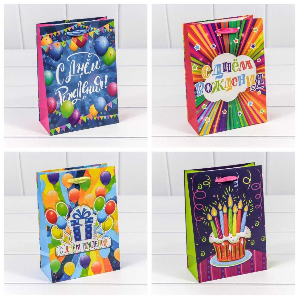 Пакет ламинат День рождения микс 14*20*6,5 см 1 шт