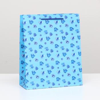 Пакет ламинат Цветочки на синем 26*32*12 см 1 шт